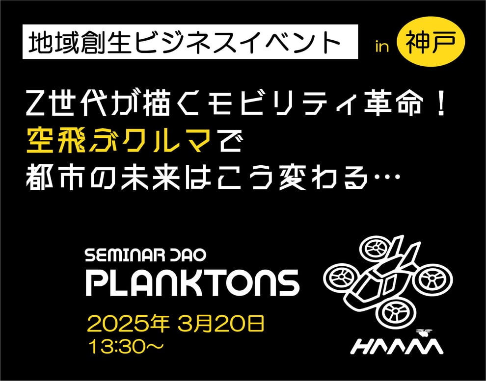 業界のプロと大学生がコラボして2030年代の「空飛ぶクルマ」ビジネスを構想する産学連携プロジェクト。Z世代の革新的なアイデアで阪神間のベイエリアがこんな風に変容する… 未知なる分野の未来人材輩出を目指す京阪神大学横断ゼミナールとして結成された『PLANKTONS』。5名の大学生による成果発表会を開催します。